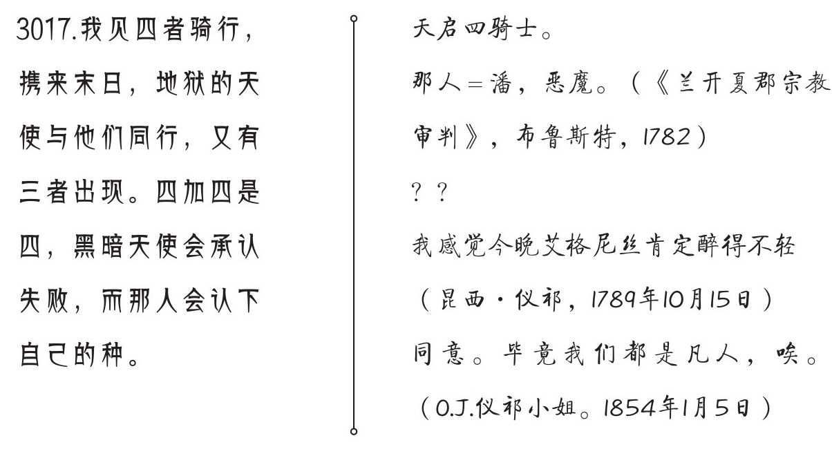 “我想说的是,”安娜丝玛耐心地说,“艾格尼丝并没看到未来。这只是一个比喻。她看到的是回忆。当然,看得并不真切,而且这些信息经过她的理解过滤后,总会有些混淆。我们认为她最擅长回忆发生在后代身边的事情。”