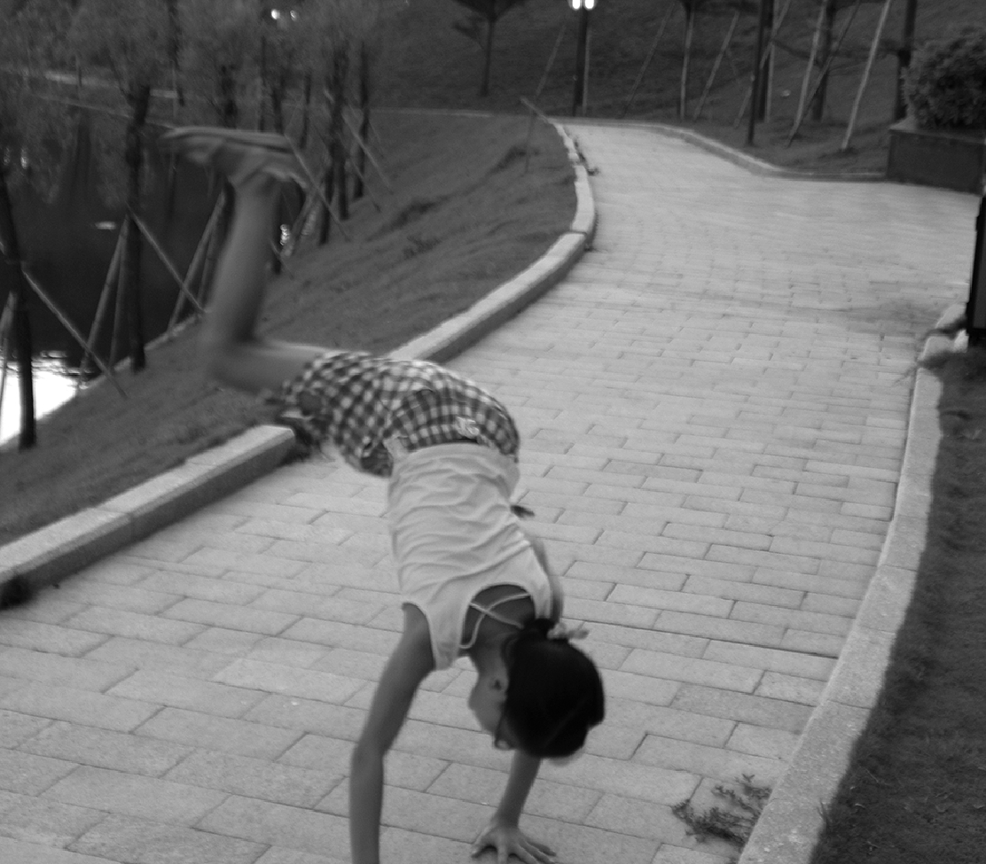 黎老师带着女儿嬉戏于翰墨池边