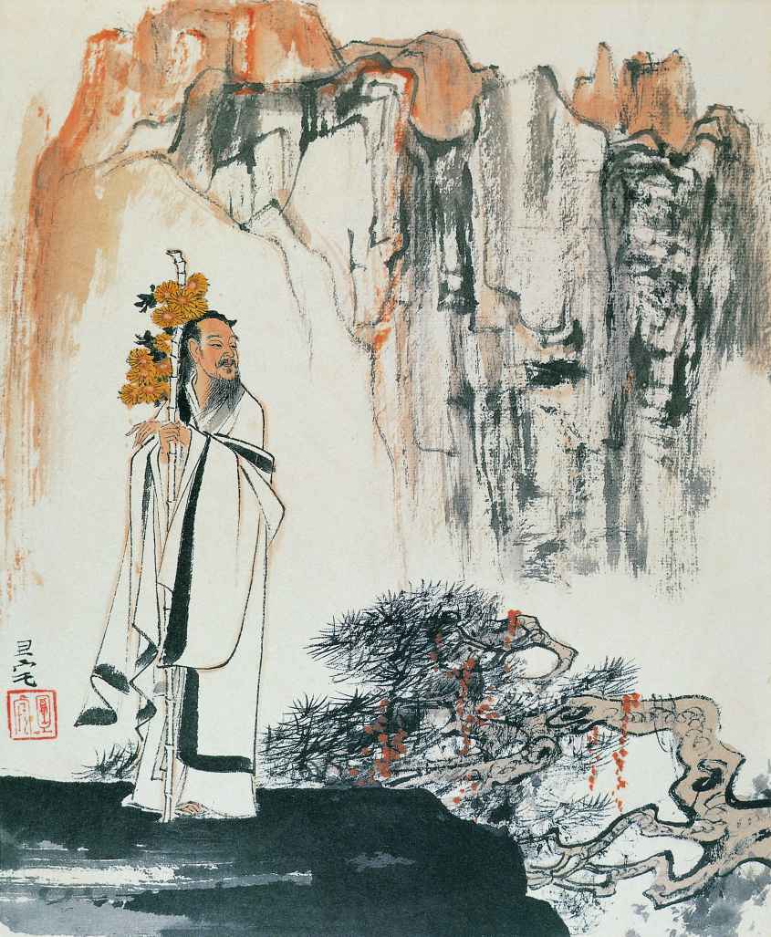 在中国文化中,菊花是有象征传统的。“采菊东篱下”不仅是写采菊这样一个行动,同样带着一种象征、隐喻的含义。清人龚自珍有诗赞陶渊明:“陶潜酷似卧龙豪,万古浔阳松菊高。”意思是说,陶渊明所写的松、菊,就像他本人一样品格崇高。东篱虽然悠闲,菊花虽然高雅,但诗人并没有被东篱和菊花所拘限,而是忽然之间就跳出去了。“采菊东篱下”象征着品格的持守,“悠然见南山”则是一种超越,一种精神上的飞跃。所谓“悠然”,有一种从容自得、不受限制的感觉。