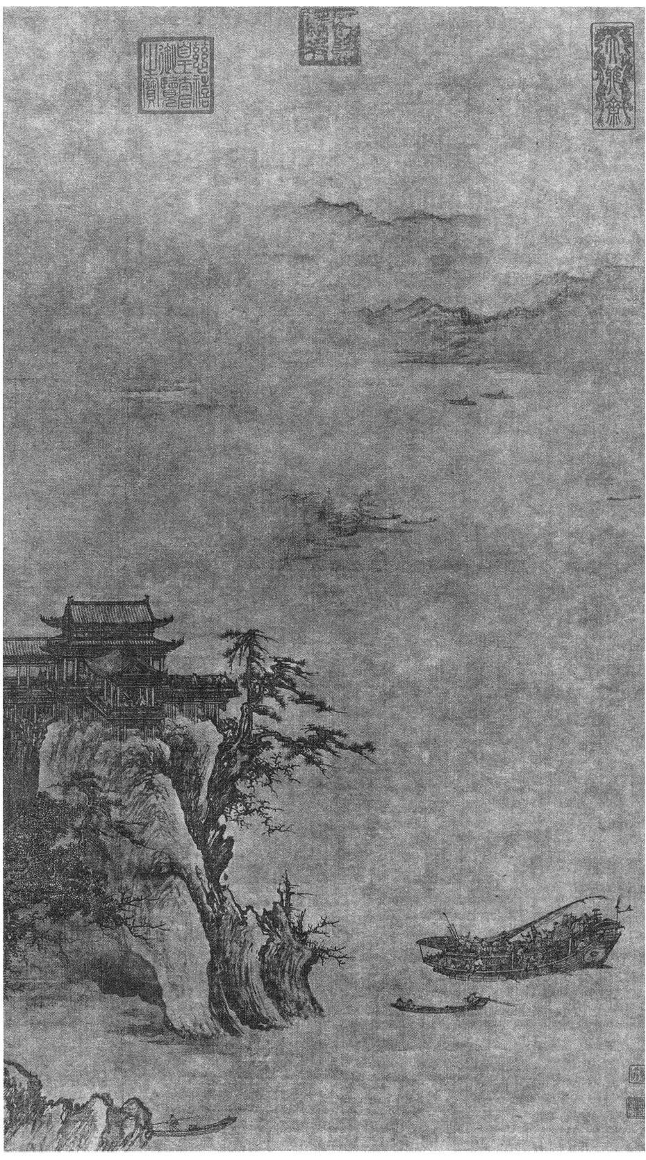 下面两句,是对这座楼房的具体描写:“交疏结绮窗,阿阁三重阶。”西汉时候没有玻璃,窗户中间是很多叫“窗棂”的木条,这样既能挡风,又能采光。一般的窗棂就是竖起的木条,而这座楼的窗棂是交叉的,构成比较讲究的装饰图案,但留有很多采光的空隙,“疏”者疏漏也。“绮”是一种丝织品,通常用来作装饰材料;“结”是捆扎,“结绮窗”,就是用“绮”来作窗帘。“阁”通“搁”,就是把东西放在另一个东西上面,这里指楼上的楼,但前面已经说了“西北有高楼”,如果你这里用“还有一层楼”,就显得词汇贫乏,影响诗歌的美,所以它用“阁”。前面这个“阿”要读“ē”,本来是指凹曲的地形,也用来形容建筑物的顶部内凹,向外延伸挑出翘角,“阿阁”就是屋顶上有飞檐翘角的阁楼。“三重阶”,就像北京故宫里面的太和殿、保和殿,它下面的石阶梯通上去以后,还有一级石头基座,把建筑物再垫高一层,这就叫“三重阶”。这些具体的描写,是为了烘托这座楼的华丽、考究。