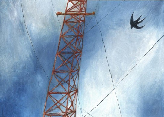 阳光强烈,天空碧蓝如洗。在这样的阳光下,橘红色的吊机手臂闪闪发亮,冬天在一夜之间消失殆尽,就连工地上刚挖出的新鲜泥土也都闪耀着春天的光芒似的。