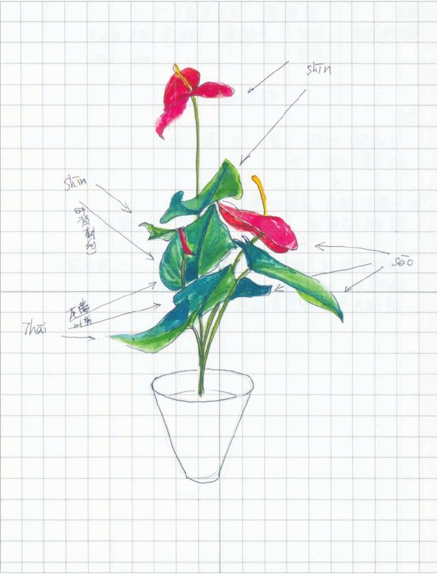 于是,便辞去工作,义无反顾地扎进了插花的研习道路中。在插花的学习中,你会发现,其实它是在研究每一种植物的自然生态、生长方式,观察它的四季变化所形成的不同面貌,发现它们每时每刻的表情,然后进行空间、艺术上的组合创作。刚开始的插花学习是非常枯燥的,因为老师会给你一个限定的严格标准,让你一直在这个框子里面,磨练自己的技术、手感甚至心性,学会与不同植物打交道,要经过数年的学习磨砺之后才可以学习立花。立花是特别像中国山水图卷的插花艺术形式,它宏大的气势所传达出的自然智慧着实让人臣服。制作一个普通立花经常要花费一天的时间,一天下来,腰都直不起来。劳作时,你只处在当下,如同世界没有别人,没有别的事情在脑中萦绕,仅是与植物之间的能量沟通,不知不觉中,你会在当下体味到心的满足,体会到通过自己的心传递给双手所表达出的坚定的力量。