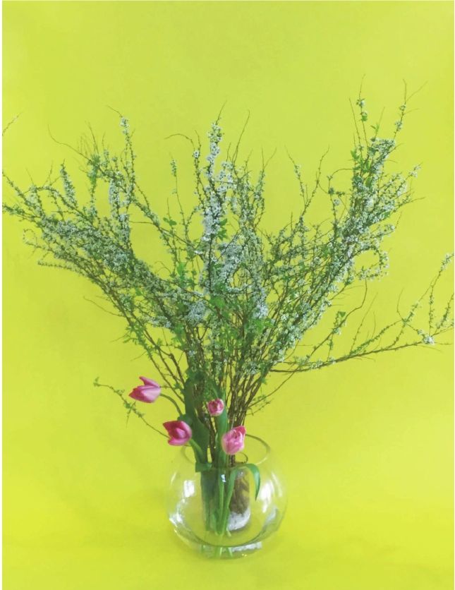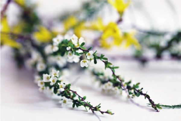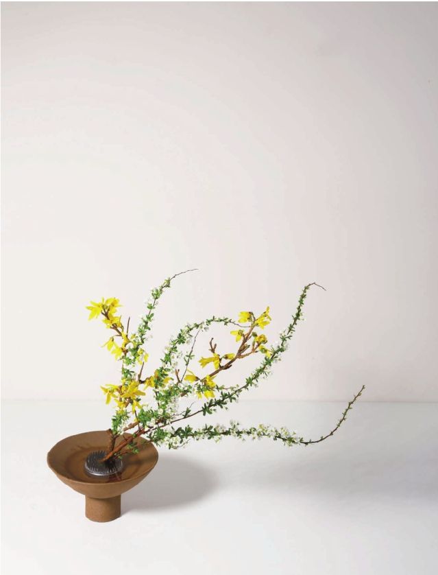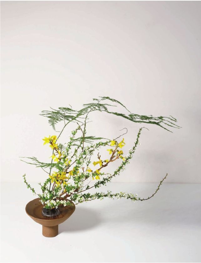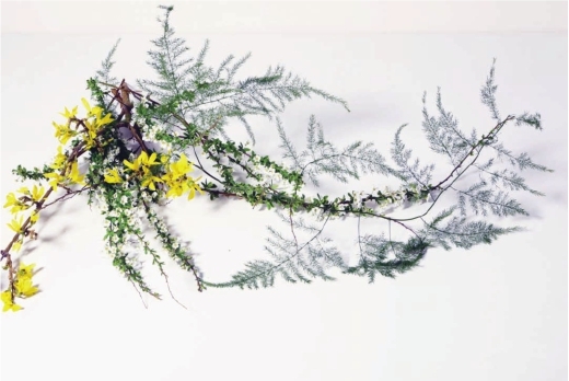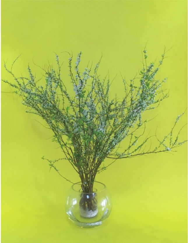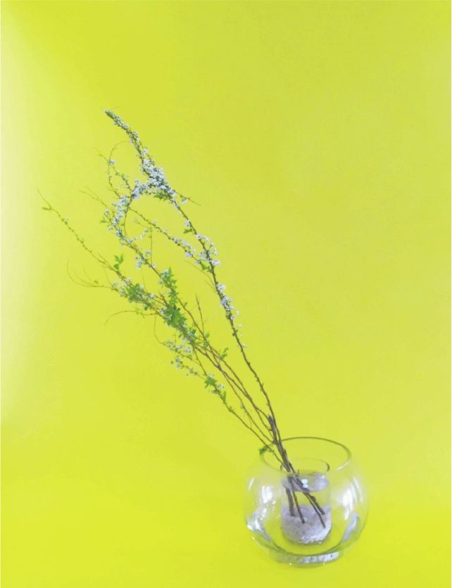 这节要通过雪柳的不同表现手法,来阐述西式花艺与东方花道的一些区别。
