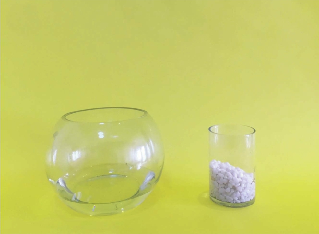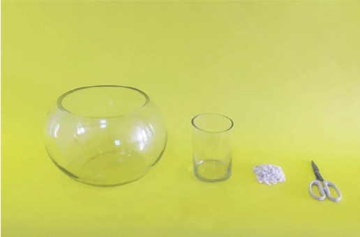 准备工具 两个玻璃器皿(一大一小)、白色石子、剪刀一把