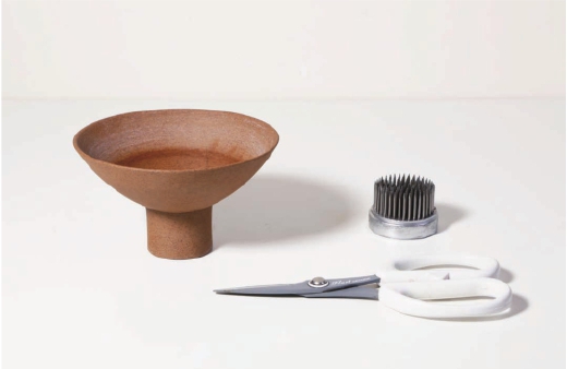 东方花道里器皿有很多古典造型,对材质也有要求,在古典插花里以铜器、上等瓷器和竹藤器三大类型器皿为主。东方花道里花器是插花作品中不可缺少的一部分,经常被比喻成大地。