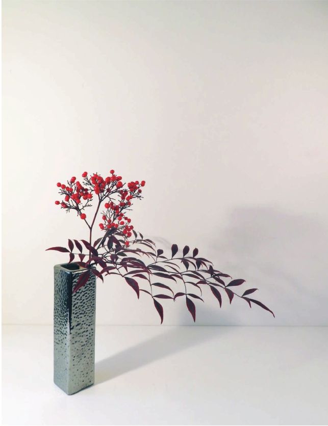 在秋分的这个节气里,我们即将与秋天告别,所以为南天竹单独做一节,来纪念这个秋季。在花道里,很多人都没有意识到,花器与插花造型之间的匹配关系,经常看到花与器不协调的搭配作品。有的花器轻,有的呆滞无趣,有的花瘦器壮,那我们就通过南天竹这一种花材,来对比讲解一下同种花材如何用不同的花器来表现其特点,从而达到花与器和谐相生的效果。