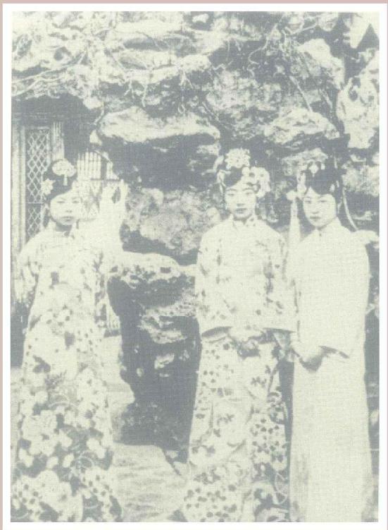 左起文绣、婉容、唐怡莹(黄贵妃端康的侄女)