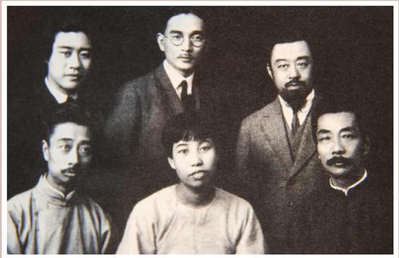 1927年10月4日,鲁迅初抵上海合影。前左起:周建人、许广平、鲁迅。后左起:孙熙福、林语堂、孙伏园