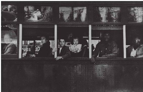 弗兰克表现了社会的分裂、人类的孤立,但在绝望的脸孔中,人人有他的尊严与高贵,他的照片是对生活的肯定,出自爱,而不是恨和幻灭。