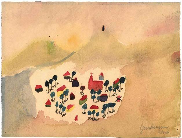 这是玛尔吉特记忆中的家乡吧。这也是最寻常的捷克风景,那是个美丽富饶的国家。和欧洲的其他国家一样,每一个村庄、城镇的中心,总是矗立着一个教堂。在玛尔吉特的画中,人是渺小的,而天地山川是舒展而宽阔的。你可以感受到清晨湿润的空气,万物在晨雾中萌发。这就是孩子心中的和平。和平不是抽象的,它就是家和家乡,就是花草树木,就是虫鸣鸟叫,就是自由自在地在大自然里漫游。