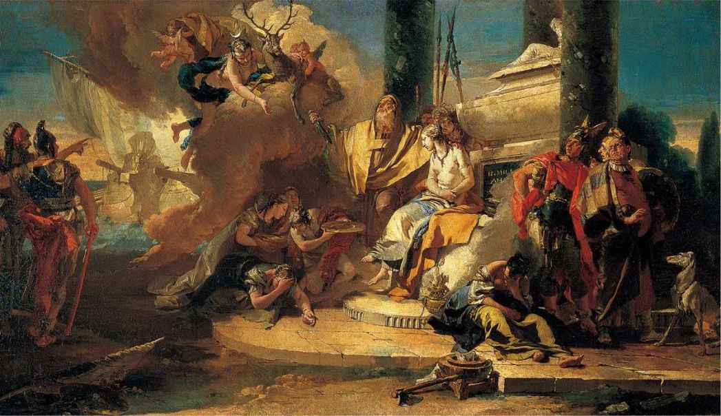 如今海伦被特洛伊王子抢走,墨涅拉俄斯就请最有威望的兄长阿伽门农出面,敦促希腊各地的王子履行当初求婚时的诺言,参加讨伐特洛伊的战争。当初未得美女青睐,如今却要效劳于美女的丈夫,王子们都很不情愿——不去吧,没名,以后在希腊没法混了;去吧,可能没命,家里的妻子儿女都可能成为别人的。但当初的誓约没注明有效期,各位英雄有苦说不出,只好答应出征。
