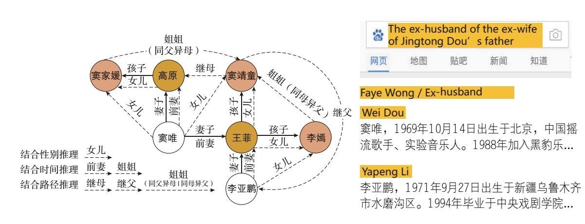 现在我们来看一个例子,假如有人搜索:窦靖童的爸爸的前妻的前夫。