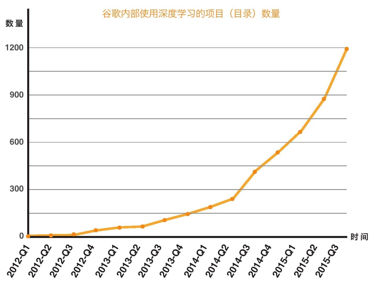 图54 深度学习在谷歌内部项目中的应用呈现迅速递增的态势142