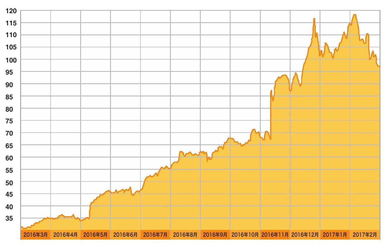 图56 2016年3月至2017年2月,英伟达(NVIDIA)公司股价的走势144