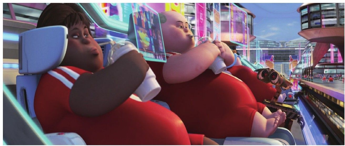 图66 电影《机器人总动员》中因科技发达而懒怠、肥胖的人类后代