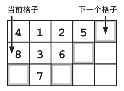 不过,如果把广度优先搜索用在现实生活中,比如在一栋建筑物里搜索,就会有一个很严重的问题,那就是会引起大量的倒退。由于每次都是将新的搜索状态加到列表的最后,所以需要探索的下一个状态可能离你特别远。即使在一个没有墙阻挡的空网格上,你也需要走相当长的一段距离才能抵达下一个状态。