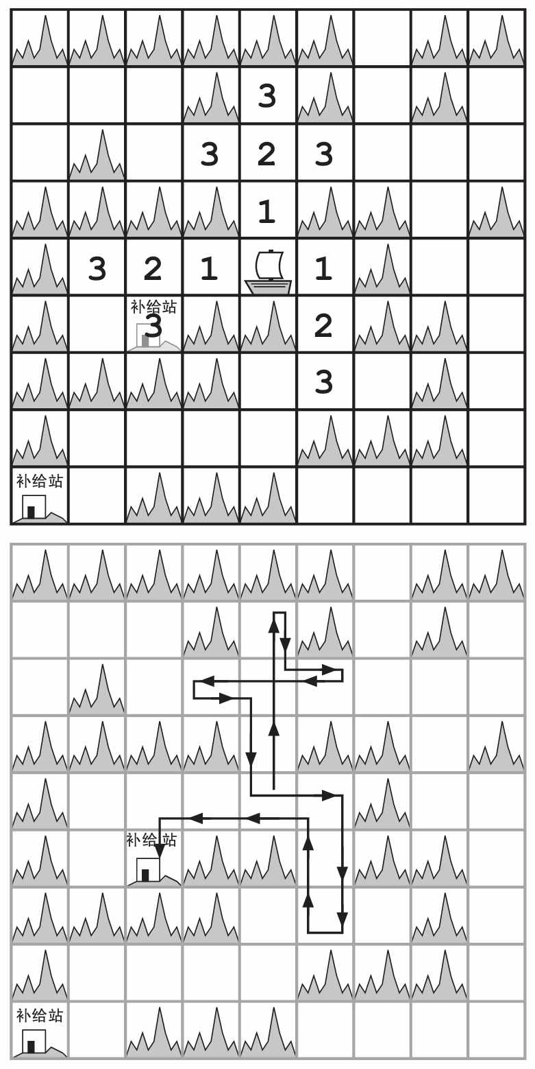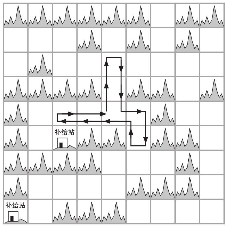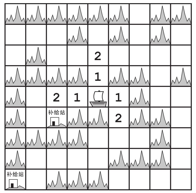 “她将那块海域划分成了边长一英里的正方形。在当时的大雾下,一英里几乎是能见度的极限了,所以我们必须走到补给站所在的正方形内才能看到它。然后我们就开始用迭代加深进行搜索了。我们首先用了一个深度限制为1的深度优先搜索,我们参照的是常用的北→东→南→西的顺序。虽然在这轮搜索中什么都没找到,但至少我们只用了数小时就排除了相邻的所有正方形。”