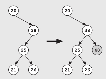 插入一个元素的计算量和树的深度成正比。但是,我们不能保证在插入新节点时依然可以保持树的平衡。事实上,当你按特定的顺序插入时,树很容易就会因为有很深的分支而变得不平衡。比如,如果我们按排好序的顺序来插入数字,所有这些加入的节点都会沿着一条分支排列。