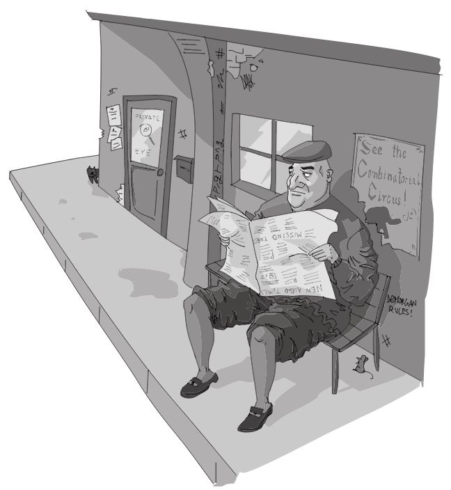 一小拨混混儿正等在Frank的办公室门口。他们本想混进去,但老远就被Frank认出来了。他们中的一个坐在长凳上,一边装作读报纸,一边来来回回打量着整条街。另外三个站在角落旁,正大声讨论最近的体育赛事。Frank走近一听才发现他们在假装聊天:其中一人大声抱怨皇家马球比赛的裁判,另一个在说即将到来的赛马内幕,剩下那个只会时不时地念叨一声“体育比赛”。