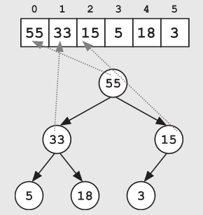 有时为了简单起见,一些堆在实现的时候直接跳过了数组索引0。根节点被放置在索引1处。在这种情况下,索引i处节点的子节点位于索引2×i和2×i+1处,这使得索引计算更为简单。无论哪种方式,都可以便捷地通过父节点的索引值来计算出两个子节点的索引值,也可以通过子节点的索引值计算出父节点的索引值(子节点的索引值除以2后向下取整便可得到其父节点的索引值)。