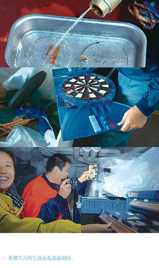 寻宝路上欢乐不断。曾乔在后院里,发现了一个大水池和水箱,咱们的淡水危机警报,一下子解除了。在军需库里,我们找到了游戏机、飞镖盘、录像带、光盘……一个冰箱突然站在了我面前,毫不犹豫地打开,没电,但是满满塞着矿泉水,一看保质期,还能喝。我乐了:“打包,全部带走。”