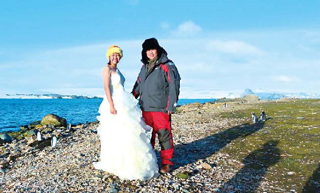 梁红脱下外套,里面穿的是婚纱。白色的婚纱,在雪地上蔓延开来,和茫茫雪野融合在了一起,仿佛整个南极都是她婚纱的裙摆。美极了。冻得瑟瑟发抖的梁红满脸笑意。我问她冷不冷,她哆嗦着摇头,脸上全是幸福。