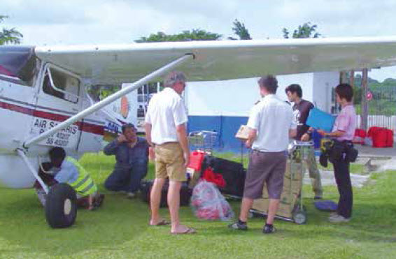 行李装机完毕。帕斯卡开车赶过来,机场通知他去拿我们丢失的行李,我们的绳子回来了。之前的种种不快一扫而光,最后的装备也归队了。我们准备飞往安布里姆岛,向火山进发。