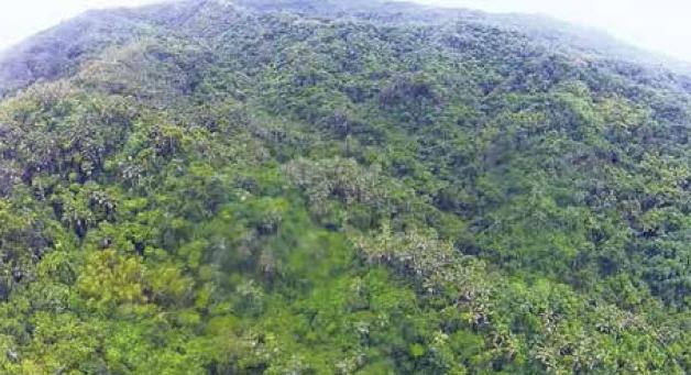 火山气候下试飞,鸟瞰郁郁葱葱的雨林。