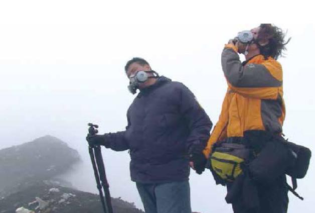 乔伊斯和厨师顶不住了,他们要下山住,台风过了再上来。乔伊斯劝我们也先下去,这样不行,太冒险了,风力如果继续加大的话,我们人都可能被吹进火山里面去。