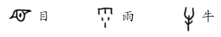 没有人能找到直接的证据,以证明这种文字形成的早期阶段,而形成过程也不会有记录在案;但专家们相信,早期的文字大概就是这样形成的。东亚已知的最早文字记录出现在甲骨上,而甲骨文已经是一个完整的文字体系了。商朝的文字并不是象形文字,虽然很多字体和早期阶段的象形文字有关联。商朝的“目”字是这么写的: