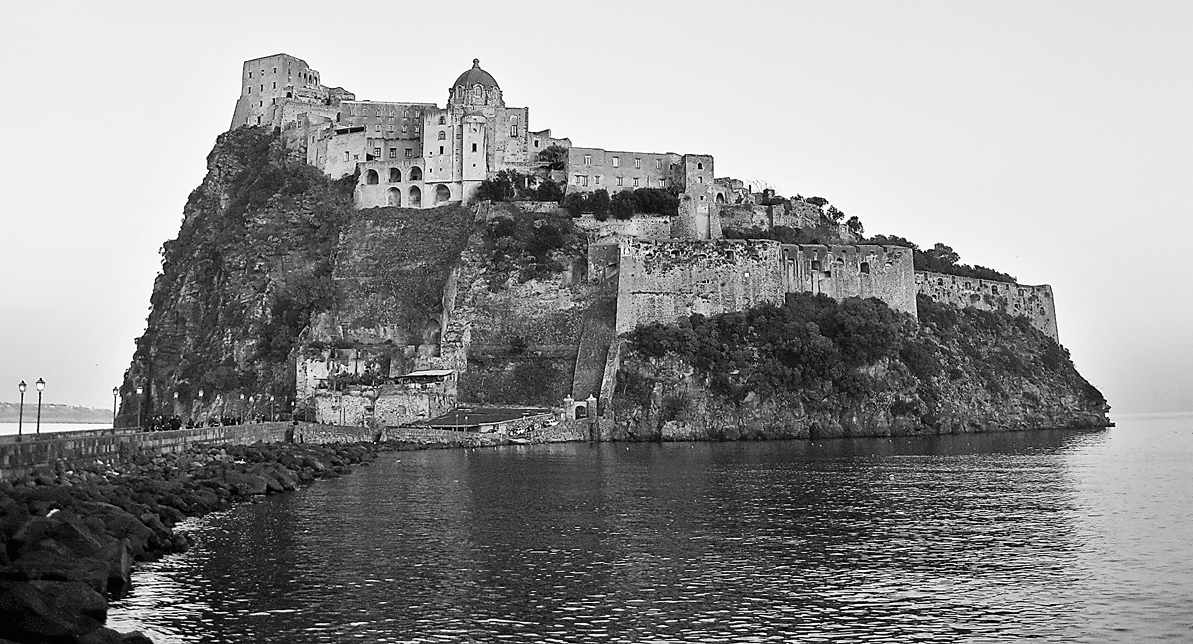阿拉贡堡(Castello Aragonese)是一座从第勒尼安海中笔直升起的小岛,看起来就像只乌龟一样。它位于那不勒斯南方约30公里处,可以从较大的伊斯基亚(Ischia)岛上通过一座又长又窄的石桥到达。在桥的尽头有个售票亭,花10欧元买张票就能让你爬上那座赋予这个小岛名字的壮观城堡,或者更准确地说,是乘电梯上去。城堡中有一个中世纪刑讯用具展览,还有一间很有意思的酒店和一家室外咖啡厅。在夏天的夜晚,这家咖啡厅应该是个绝好的去处,既可以品尝金巴利开胃酒,又可以遥想恐怖的过去。