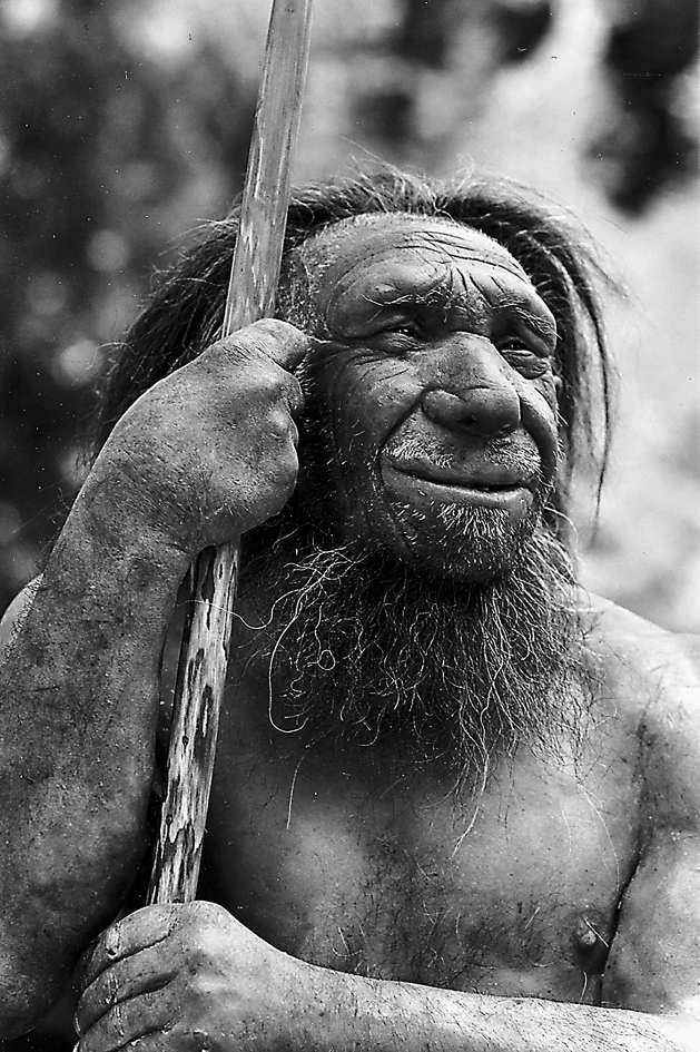 尼安德河谷,即德文中的内安德塔尔(Neandertal),位于科隆以北30多公里处,旁边就是杜塞尔河的一道河弯,而这条波澜不兴的小河是莱茵河的一条支流。在历史上的大部分时间里,尼安德河谷两岸都是石灰岩的崖壁。就在这些山崖表面的一个洞穴中,1856年,人们发现了一些骨头,尼安德特人从此进入了全世界的视野。今天,这道河谷已经成了算是旧石器时代主题公园的游览地,里面有一座尼安德特人博物馆。这栋令人吃惊的现代建筑墙体全是酒瓶绿玻璃。除此之外,这里还有售卖尼安德特牌啤酒的咖啡厅,种着某种兴盛于冰河时代的灌木植物的花园,以及通往当年发现地点的步道。当然,那些骨头、那个洞穴甚至那块崖壁都已经不复存在了(这里的石灰岩已经作为建筑材料采掘下来运走了)。一进博物馆的入口就能看到一位老年尼安德特人的模型站在那里。他脸上挂着和蔼的微笑,斜倚着一根棍子,就像是一个蓬头垢面的约吉·贝拉(Yogi Berra)[1]。他旁边就是这家博物馆最受欢迎的游乐设施之一:变形站。只要花上3欧元,游客就可以在这里拍一张自己的侧面照,旁边还有一张经过加工的侧面照与之相对。在经过处理的照片中,你的下巴向后退去,前额变得倾斜,后脑鼓了出来。孩子们会很高兴看到自己变形成了尼安德特人,或者说更高兴看到自己的兄弟姐妹们变成了尼安德特人。他们会兴奋到尖叫起来。