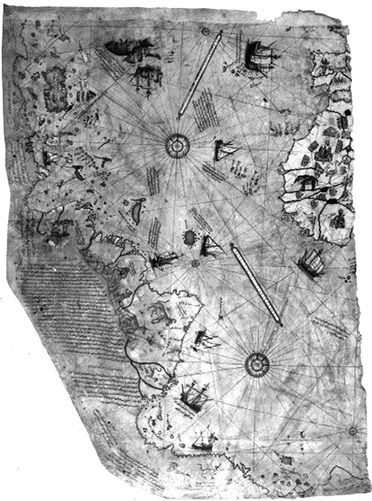 皮里•雷斯地图是16世纪早期的地图。据说,它是整合了其它地图信息绘制而成的,准确地标绘了巴西海岸线的位置。一些研究者们甚至认为,它正确标绘了南极大陆冰川世纪之前的海岸线。不过,南极大陆是在3个世纪之后才被发现的。