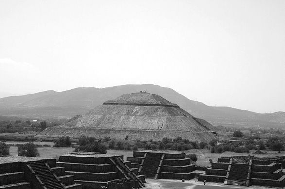 特奥蒂瓦坎的太阳金字塔同埃及的大金字塔有诸多相似之处。太阳金字塔同月亮金字塔和羽蛇神金字塔一道,形成了一个猎户座的腰带阵列。埃及的吉萨金字塔群也采用了这种布局。在时空上分离的两种文明是如何按照同一个模板来建造金字塔的呢?