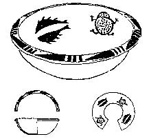 临潼姜寨一期鱼蛙纹彩陶盆(下左为口沿、正面,下右为盆内纹样展开图)