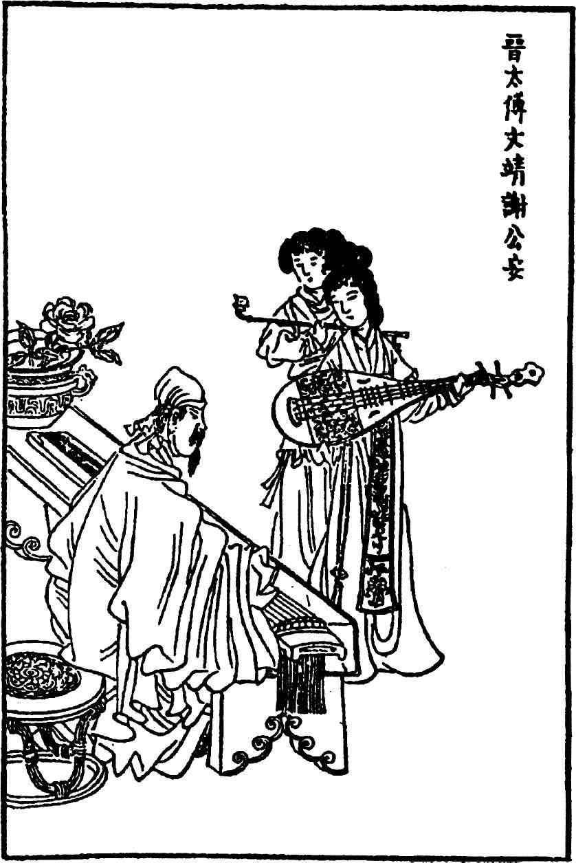 位极人臣的东晋太傅谢安,可以和妓女厮混,但不能纳妾。(选自《於越先贤像传赞》,清王龄撰,任熊绘图,咸丰六年萧山王氏养和堂刻本。)