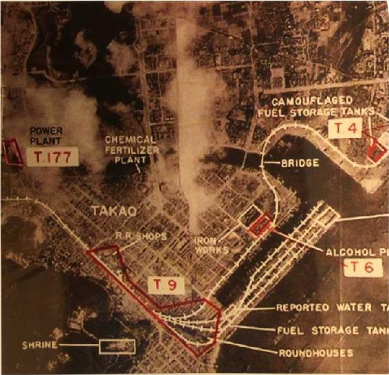 一九四四年二月,美国空军的秘密侦测机拍摄日本所属高雄港的要塞,设定轰炸标的。六号标的是酒厂、一百七十七号标的是发电厂,四号标的是隐藏的储油库。九号标的,让我仔细看看九号标的吧——是储水库、储油库、圆型建构。