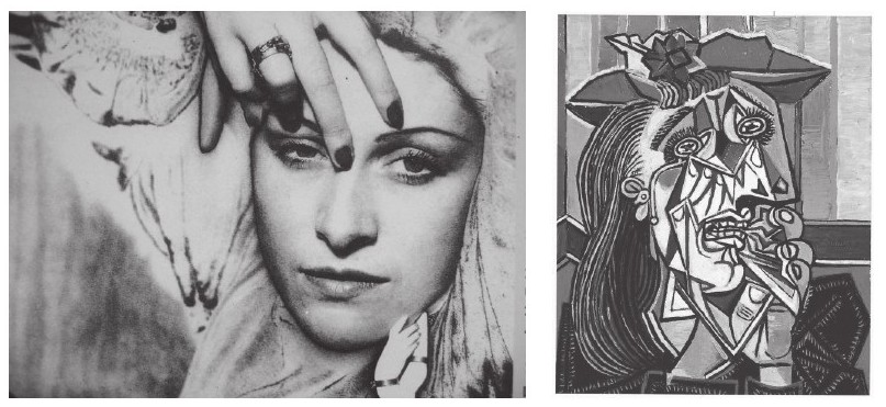 毕加索利用朵拉的面孔创作了一系列精彩肖像。与此同时,他的另一个情人泰莱丝也与朵拉如对手般交替呈现在画布上。情敌相见,分外眼红,激烈争吵。毕加索在旁作壁上观,埋头画画。他承认,两个女人他都爱,一爱其温柔,一爱其聪明。