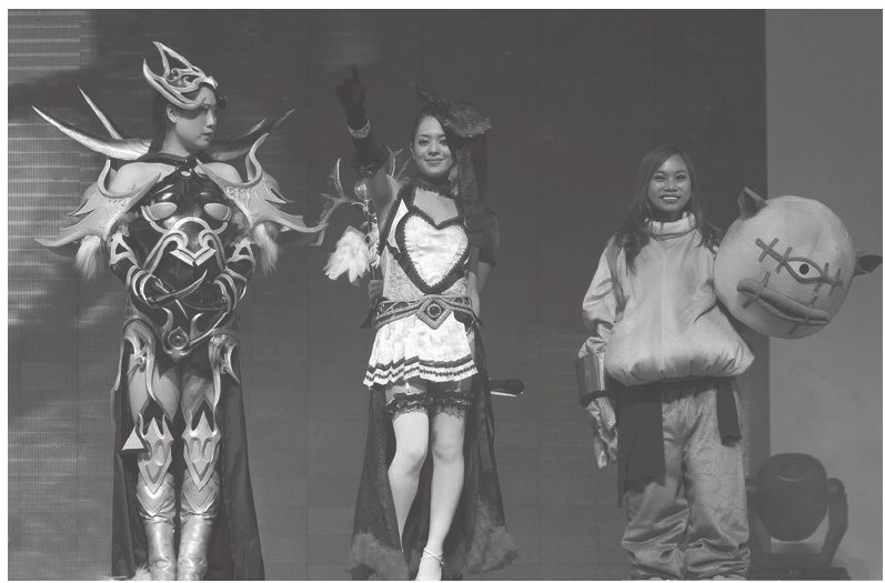 苍井空代言某网络游戏,首次做客中国内地,与凤姐、芙蓉姐姐同台上演COSPLAY秀。