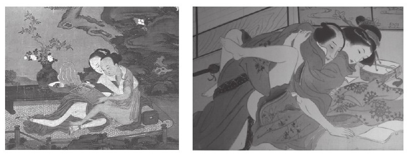 中国古代春宫画对印度和日本影响很大。古印度盛行性雕刻,11世纪前后修建的卡杰拉霍神庙群,几十座神庙的外墙和内壁都布满了形态各异的性爱雕塑。而日本著名的浮世绘是描写民间日常生活的一种艺术形式,其中有不少性的内容。与明代春宫画相比,浮世绘的内容夸大而富于幻想,对男女身体细节的描绘十分突出,有些画卷还采取连环画的形式,这在中国是十分罕见的。