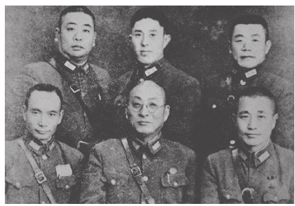 中国远征军高级将领合影,右下角为杜聿明。杜聿明(1904—1981),字光亭,陕西省米脂县人,黄埔系骨干,陆军中将。1949年1月在淮海战役中为解放军所俘。1959年底获得特赦,后任全国政协文史专员等职,1981年病逝于北京。