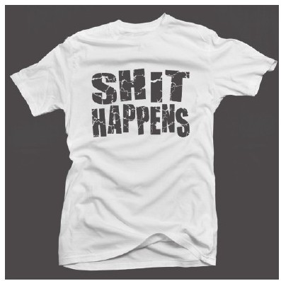 “Shit Happens”是句非常具有禅意的名言。电影《阿甘正传》中,阿甘在跑步时踩到shit,旁边一位失意的商人问他对此事的看法,阿甘表情轻松地说“Shit Happens”,意思是“人生偶尔会有不顺遂的事发生,没什么值得大惊小怪的”。这个商人于是将“Shit Happens”做成标语,结果大卖。电影下一幕镜头出现一辆后面贴有“Shit Happens”标语的汽车,飞来横祸地被后面的另一辆车子撞了……果真是“Shit Happens”。