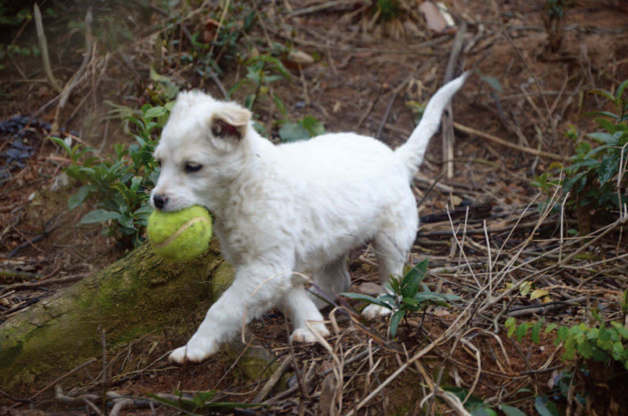 打转身(1),从财伯门前过,财伯家白狗两个多多大,多多蹦蹦跳跳,还上前抓它两下脸,大狗不还手。