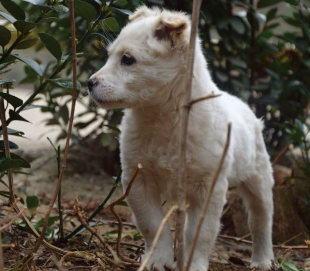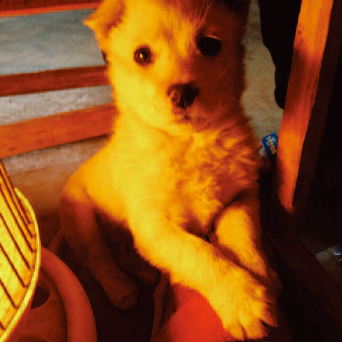 寒假回家看见多多,它来家里不久,是叔叔路上捡的。冬天冷,小孩子伏在桌上写作业,铺一张桌布,底下电火烤着,多多钻进去,头搭在我布拖鞋上。我掀开一角,它眼汪汪看着,我的脚动一下,它把头挪一挪,下巴卡在脚背处,有讨人喜欢的本事。