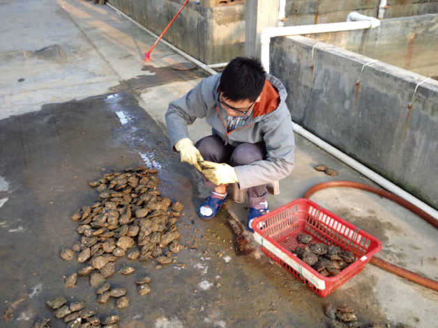我在挑选亲贝准备做养殖实验。