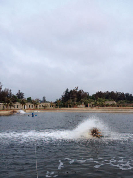 但大多数日子我不会走那么远,外面一个人也没有,心里难免发慌。不去沙滩时,在虾塘边坐一坐。几口虾塘进了水,投下虾苗,水是棕色的。有些虾塘还没投虾苗,底下撒了石灰,海水进满之后,整个虾塘就是悠悠的蓝色,真想跳下去游泳啊。开了增氧机的塘里,增氧机像蒲滚船一样浮在虾塘四角,卷起白花花的水。这样的水看起来是鲜活的。我光着脚,在塘边,一直到天完全黑下来。