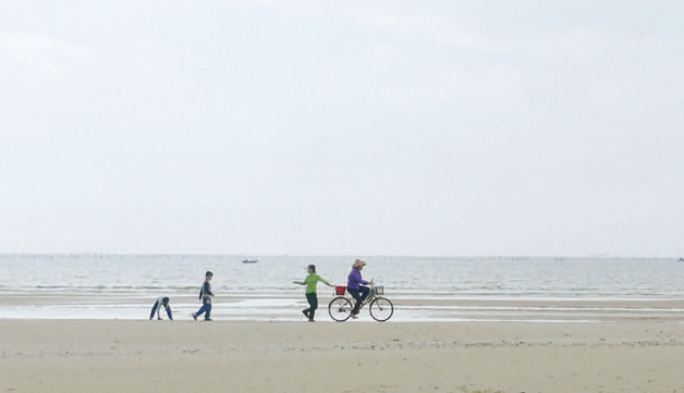 想要和大人一起去挖贝的小孩子(雷州,乌石)。