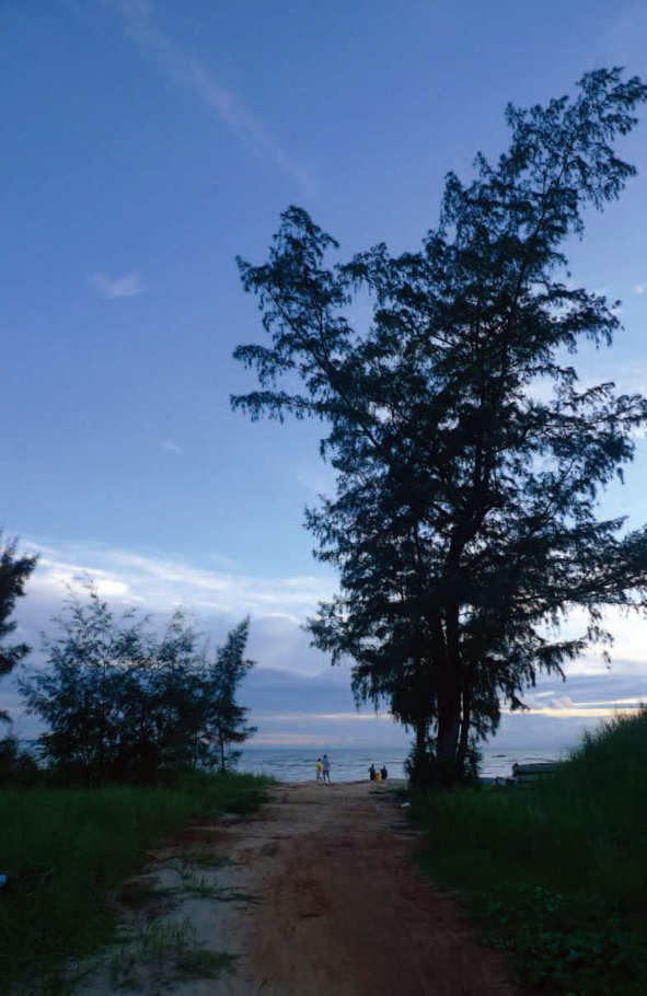 散会后,大家各自回房,我觉得新鲜一样的,躺在吊床上试了试,清凉海风悠悠吹着,十分舒服。树上有椰子,师兄摘两个下来,我们都是湖南人,用石头笨拙地砸了好一会才喝到。师兄嫌房里闷,也找吊床躺下,弓着像虾一样睡了一夜。