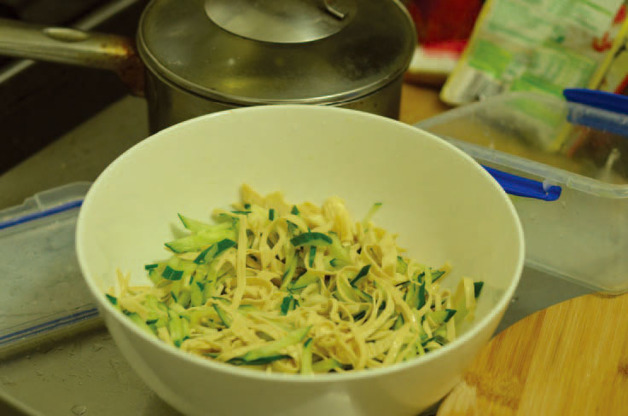 我有点沮丧,王老师不吃油盐重的,不吃内脏,不太爱吃肉,那我这个湖南人实在没什么好菜拿得出手了。无论如何,大年初一还是要请两位到我住处吃饭。去年做扣肉费了不少工夫,吃的人却寥寥无几,今年要做点不一样的。想起这一年多来跟着北方人吃饭,除常吃的饺子,凉拌菜也是饭桌上常见的食物。