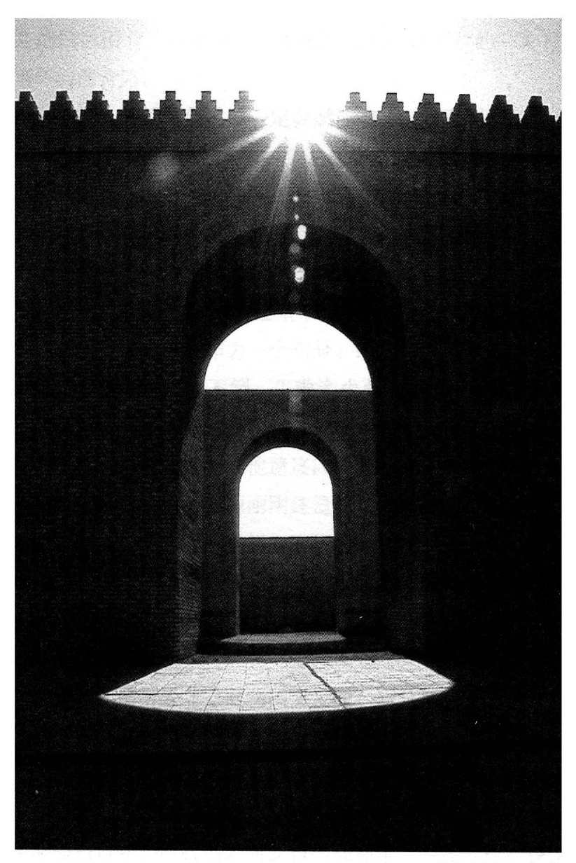 现在,在这仪仗大道和其他遗迹四周,已经矗立起许多高墙和拱门,是根据考古学家们的猜测刚刚建造的,新崭崭的十分整齐。但是走近一看,也仅止于高墙和拱门。脚下仍是泥沙,头上没有屋顶,墙内空无一物,任凭荒草丛生。有标牌写着,这儿是北宫,那儿是南宫,转弯是夏宫,但从气味判断,这由一堵堵新墙围拦着的荒地,已成为游人们的临时厕所。